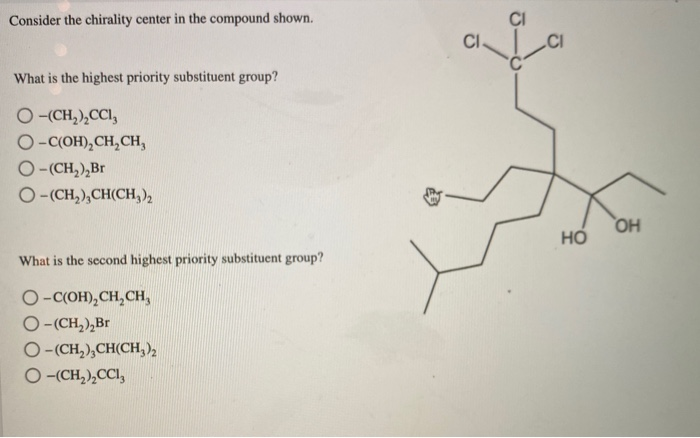 Consider The Chirality Center In The Compound Below A What Is The Highest Priority Substituent Group B What Homeworklib
